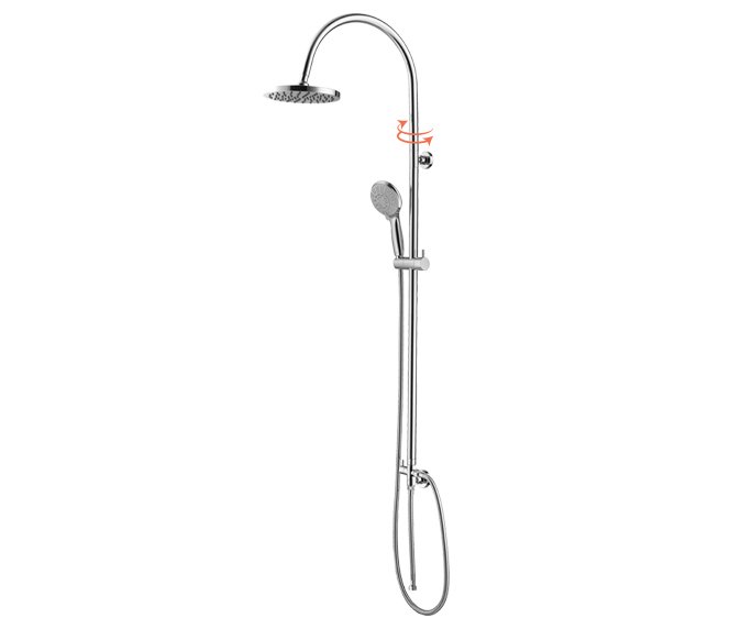 ערכת מקלחת משולבת עם מוט, ראש מקלחת עגול 200 מ"מ עם קצה זרוע מסתובבת, מזלף כרום 5 מצבי זרימה, על מאחז מתכוונן בורר מצבים, וצינור 1.5 מ' + צינור 90 ס"מ